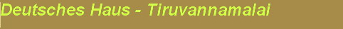 Das Deutsche Haus wurde von Dr.med. Frank Müller ins Leben gerufen und bietet spirituell Suchenden drei ruhig gelegene Appartments (ein Raum mit Air-Condition) in der Nähe des Ramanasramam mit Blick auf Arunachala. Zur Verfügung stehen zusätzlich ein PC mit Internet, kleine Bibliothek, Kochmöglichkeit, Kühlschrank. Außerdem können wir Sie am Flughafen abholen etc.. Weitere Services auf Anfrage.